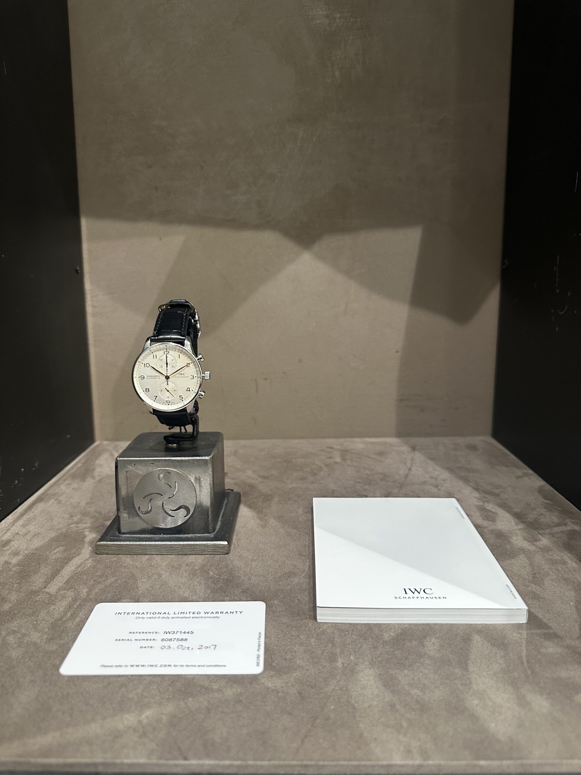 371445, anno 2017, indici e sfere oro, bracciale coccodrillo e deployante Iwc, full set,