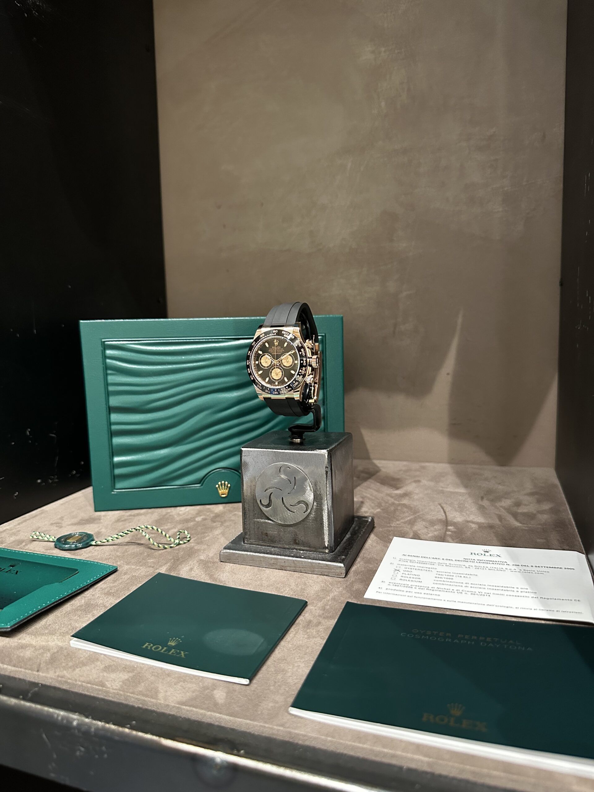 Affascinante Rolex Daytona Ref.116515LN, anno 2022, nuovo mai indossato, oro rosa, bracciale oysterflex in caucciù Rolex, deployante Rolex in oro rosa, full set.