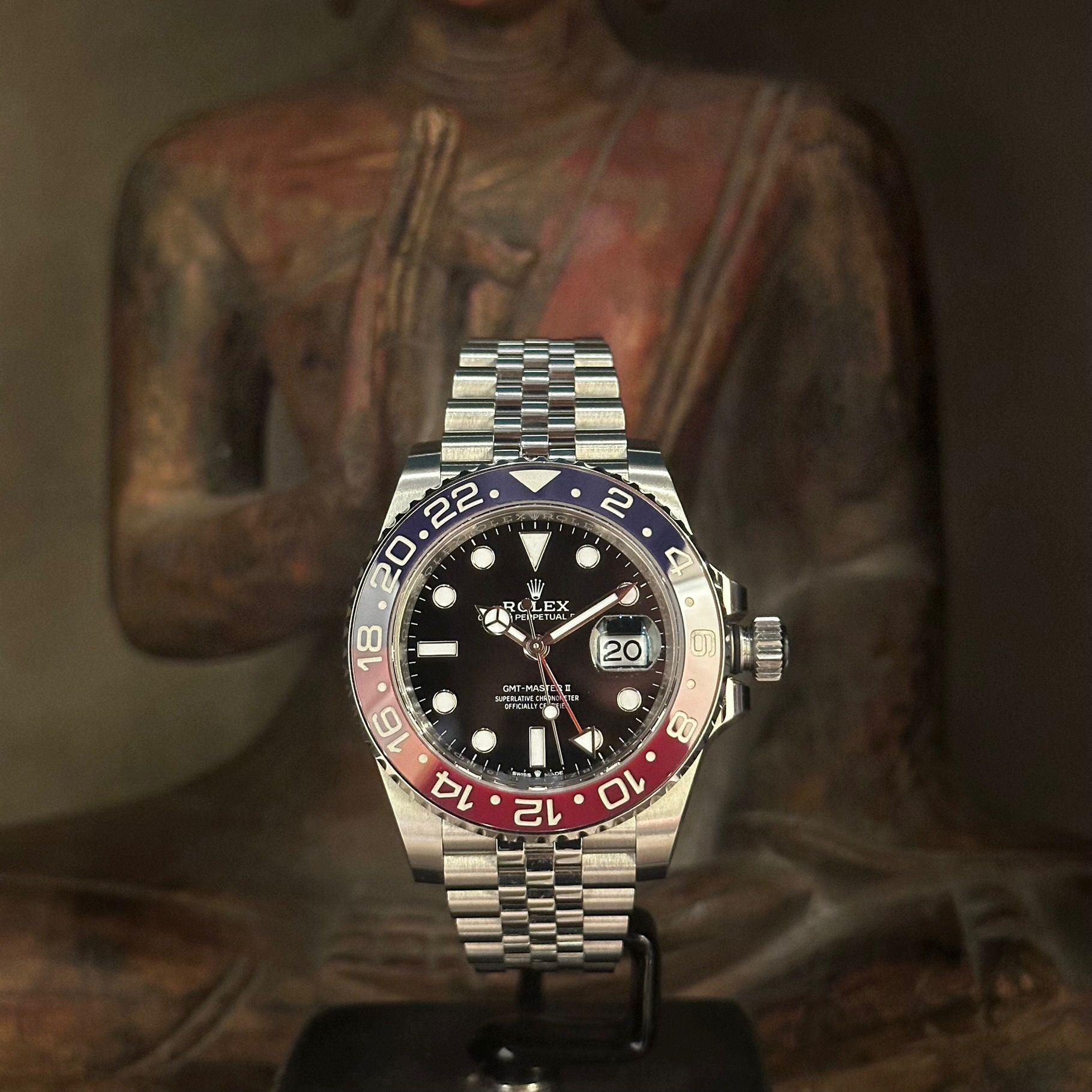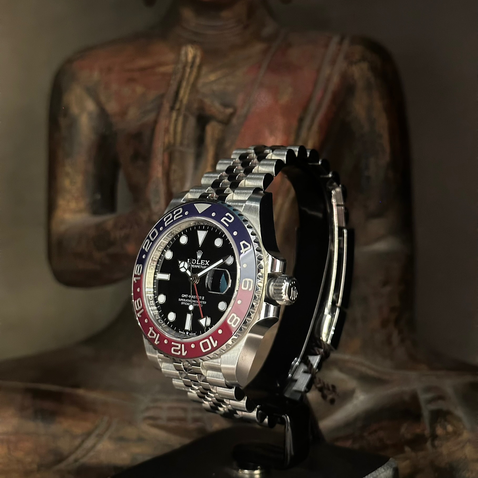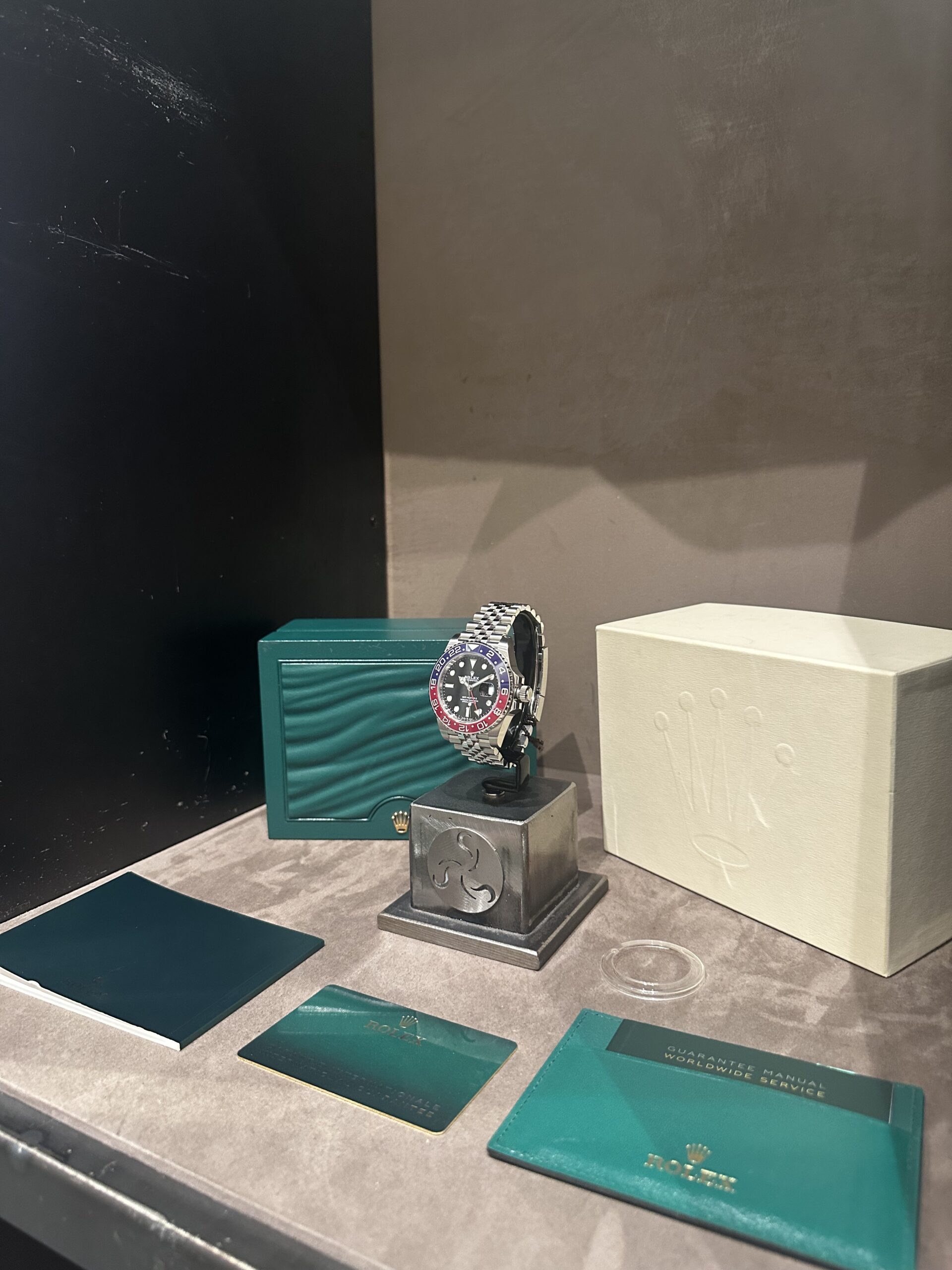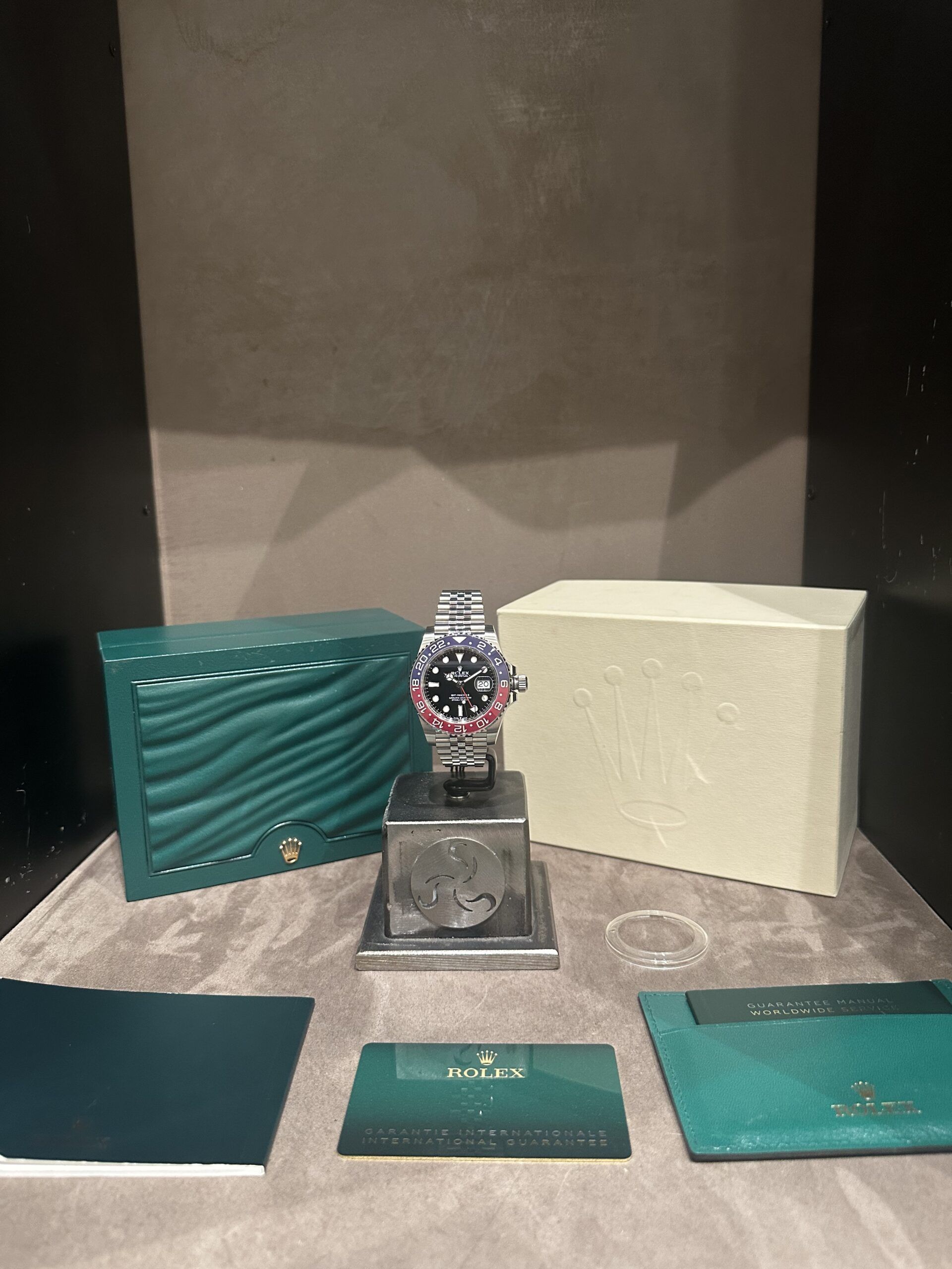 Stunning Rolex GMT Master II, Ref. 126710BLRO, year 2023, jubilee bracelet, ceramic bezel, full set.