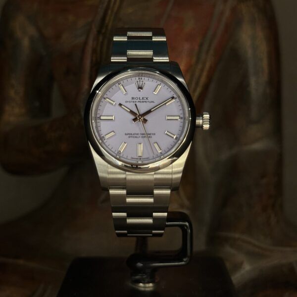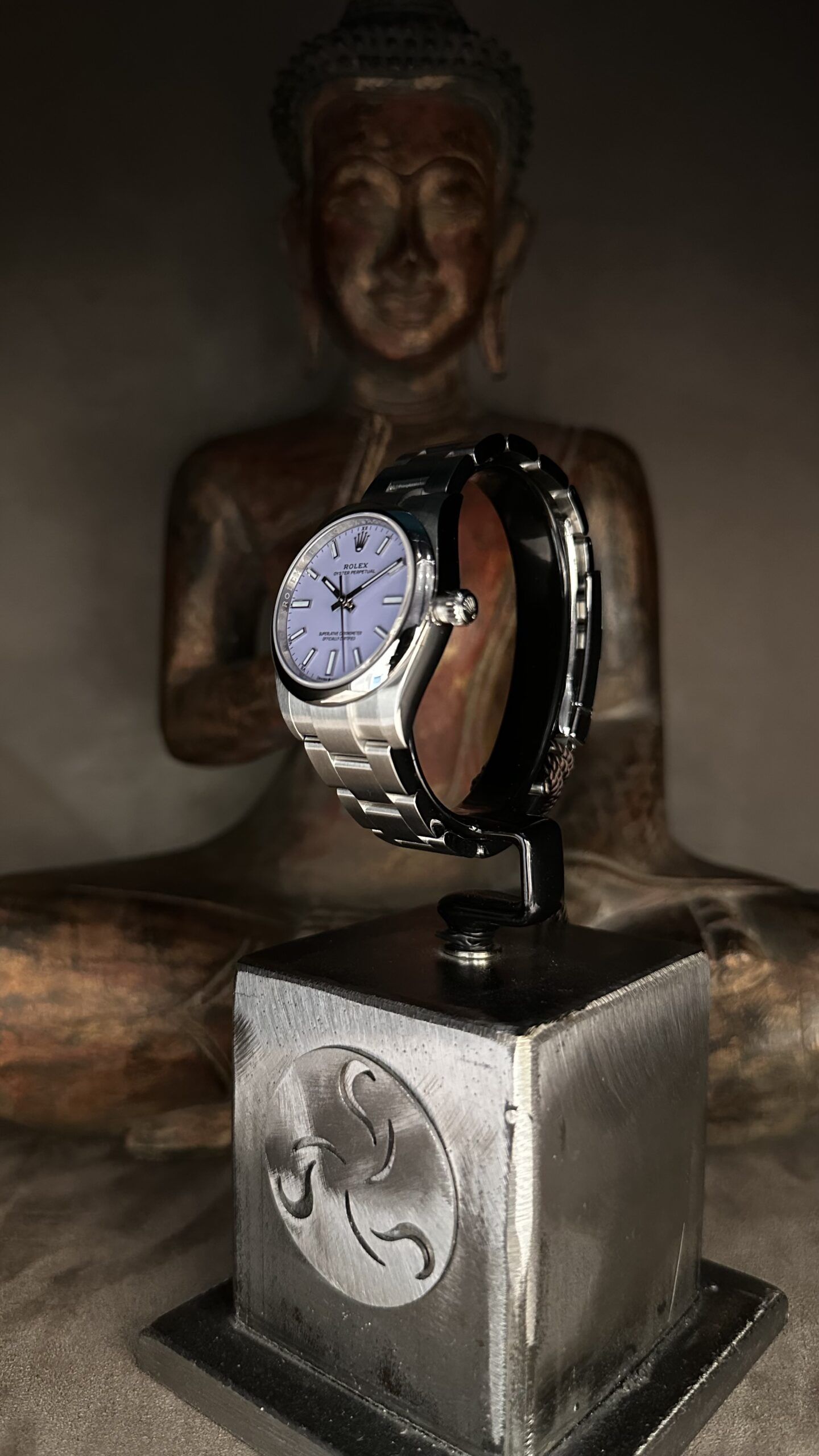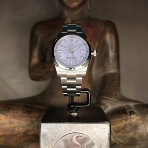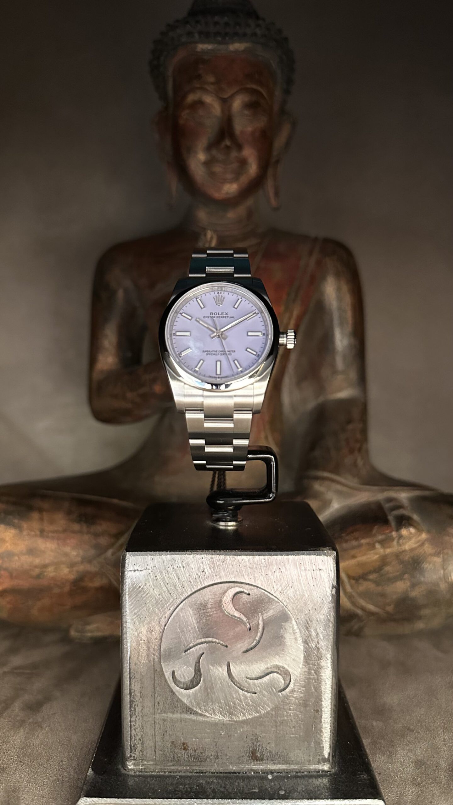 Stunning Rolex Oyster Perpetual Ref. 124200, new year 2025, 34 mm, lavender dial, Oyster bracelet, full set.