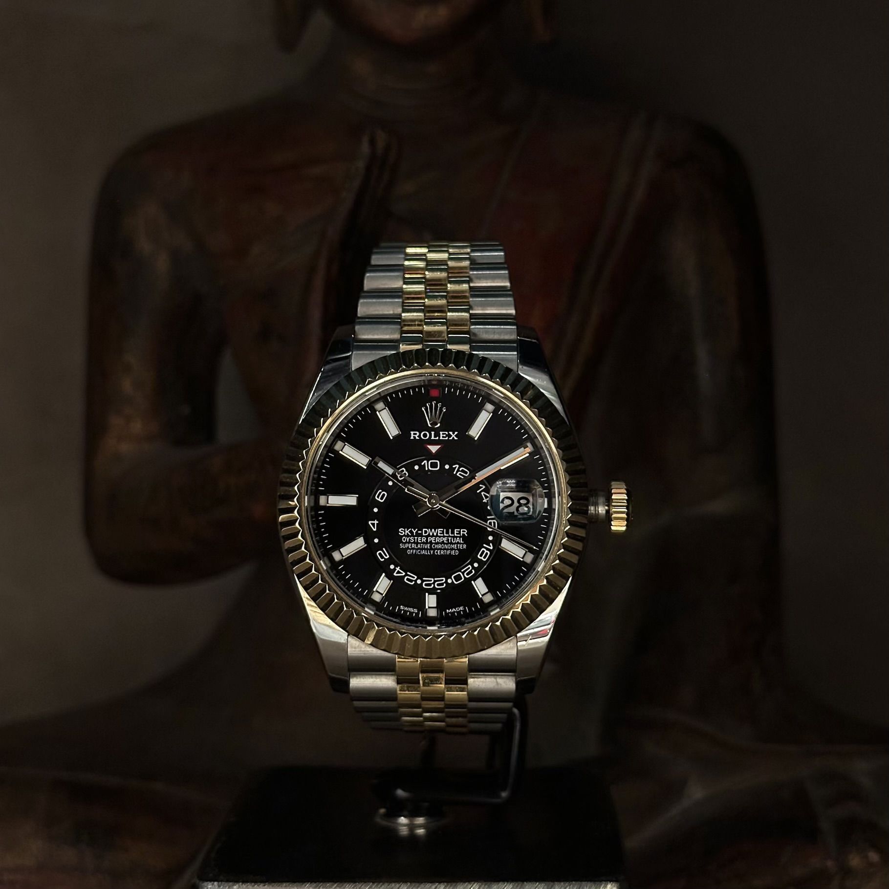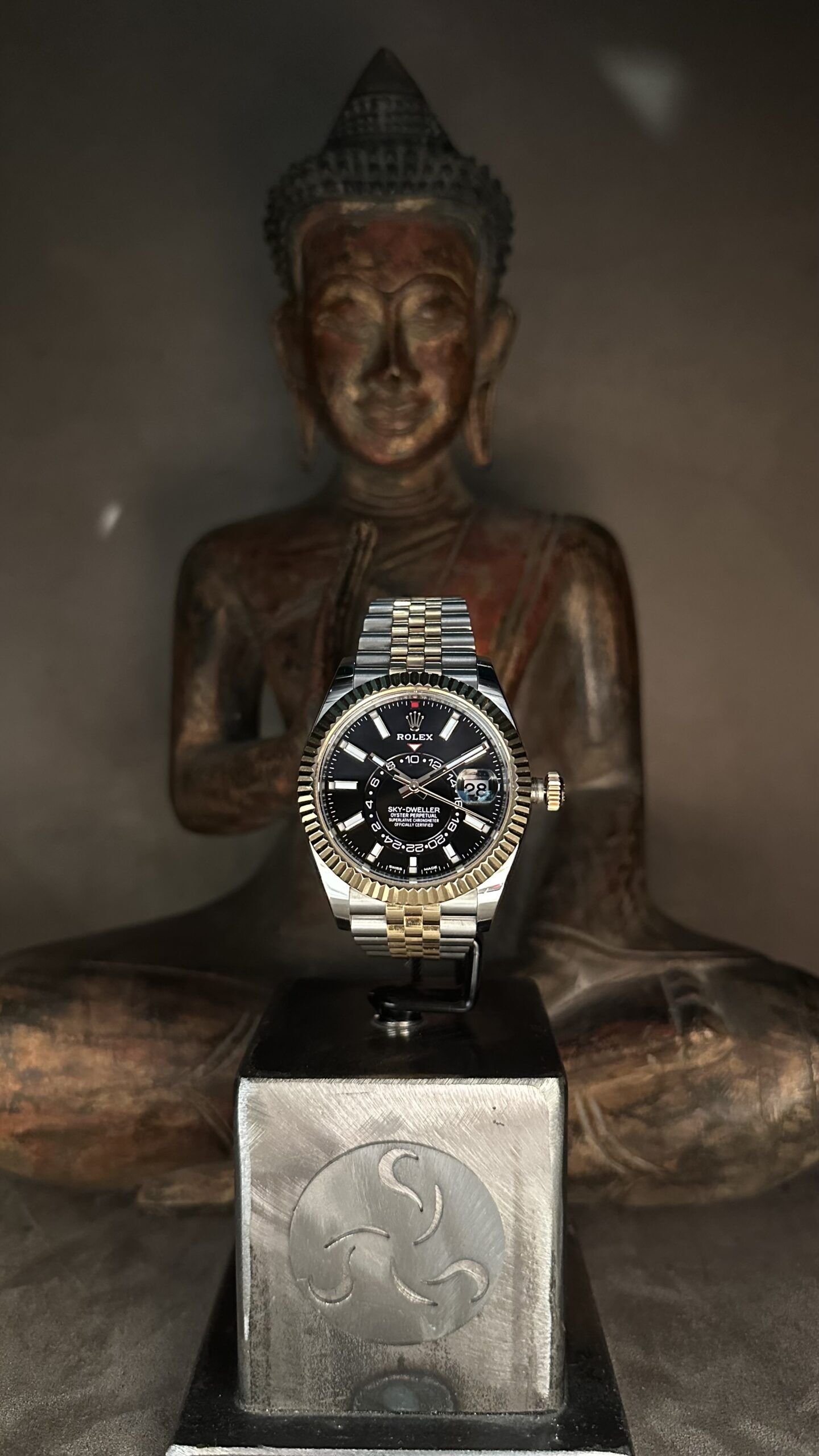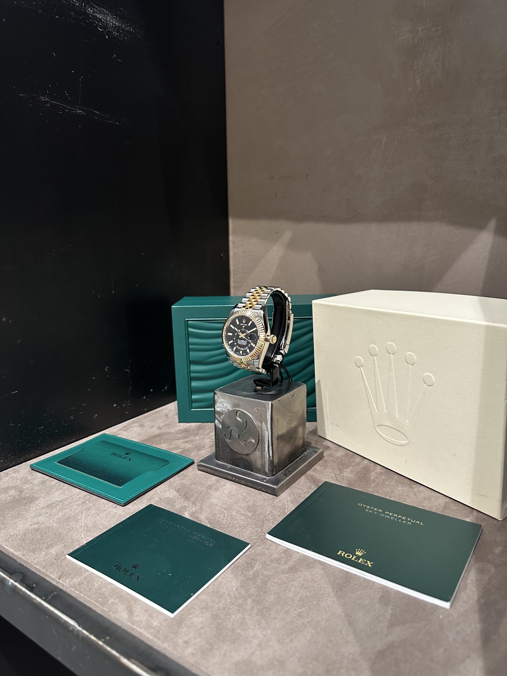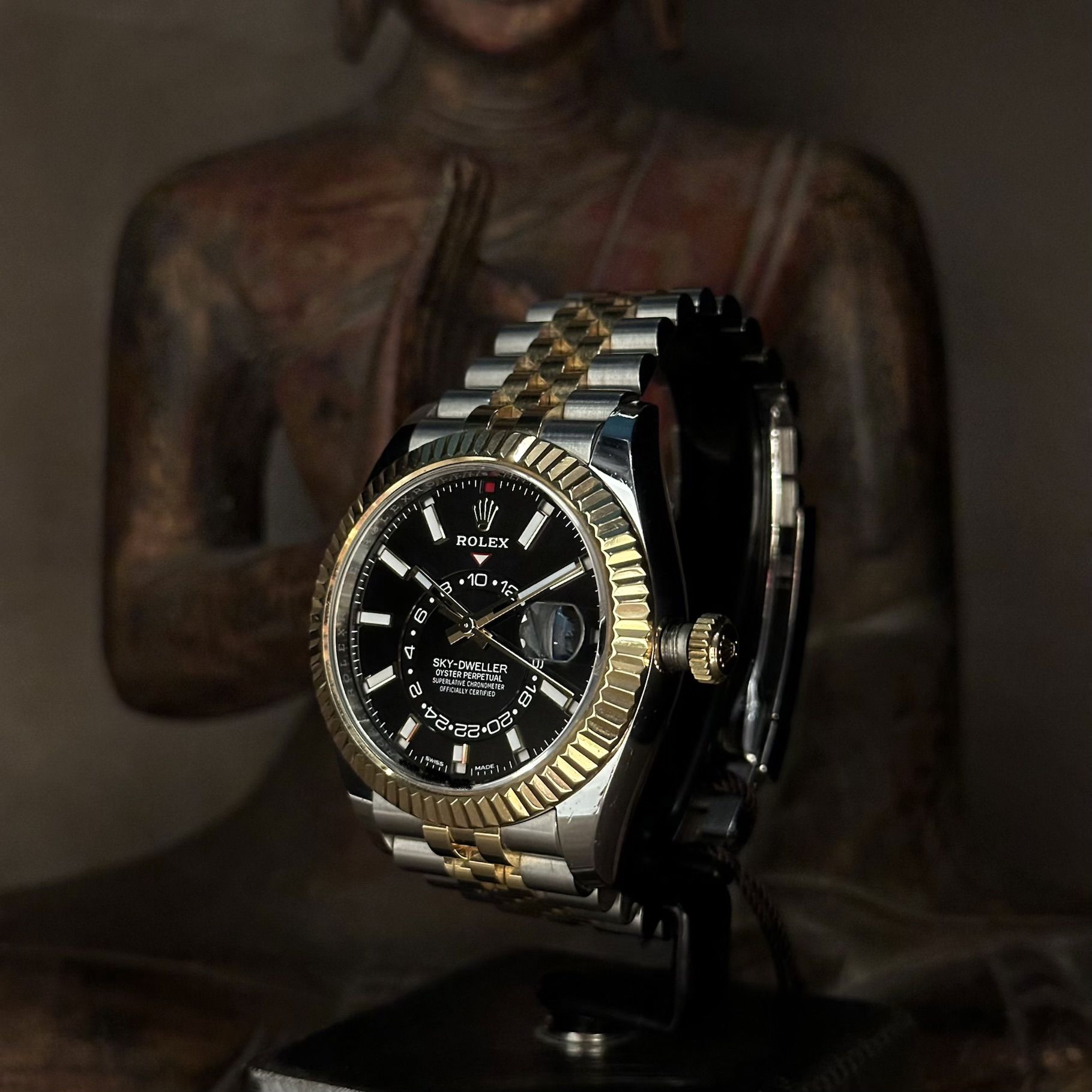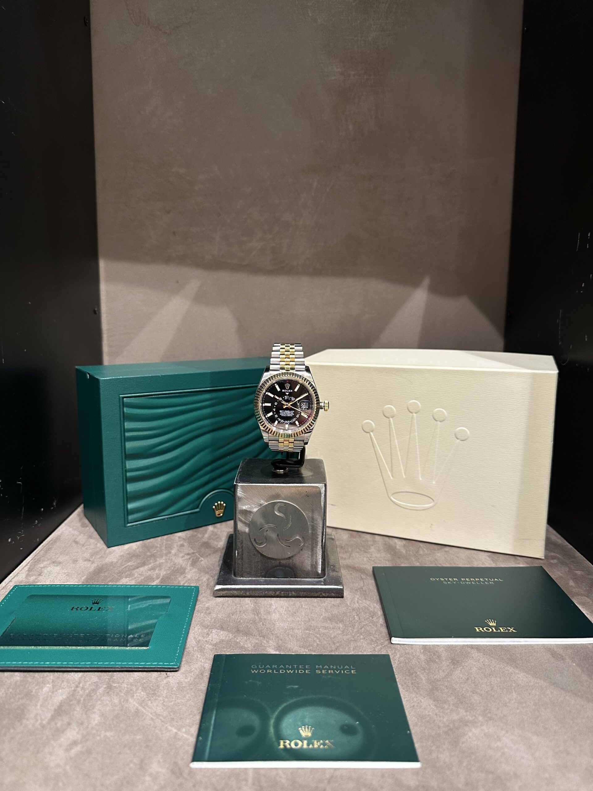 Stunning Rolex Sky Dweller, Ref. 326933, year 2022, steel and yellow gold, knurled bezel, jubilee bracelet, full set.