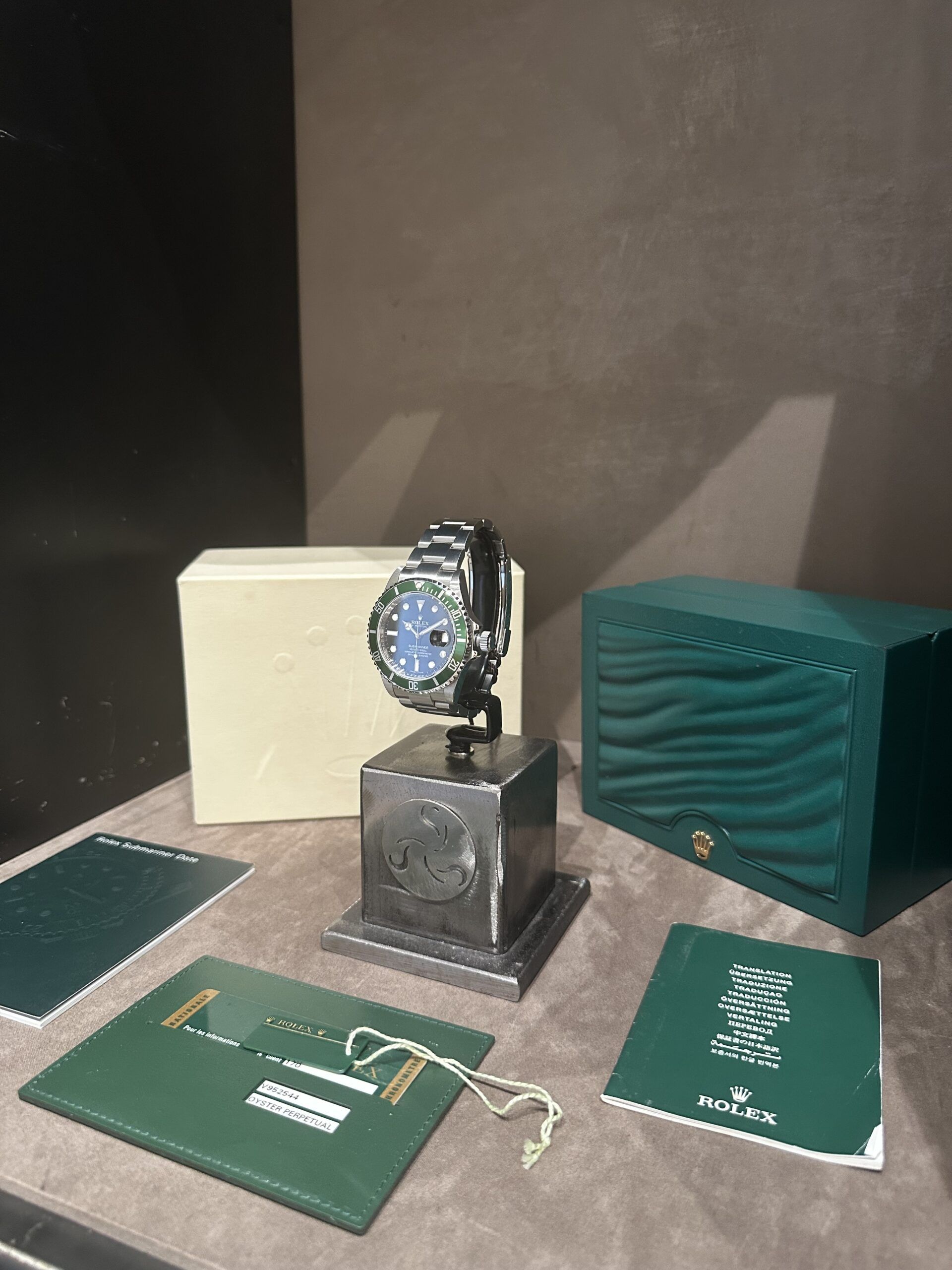 Beautiful Rolex Submariner 16610LV RRR, year 2016, green bezel, full case, Oyster bracelet, perfect watch, totally contemporary, full set.
